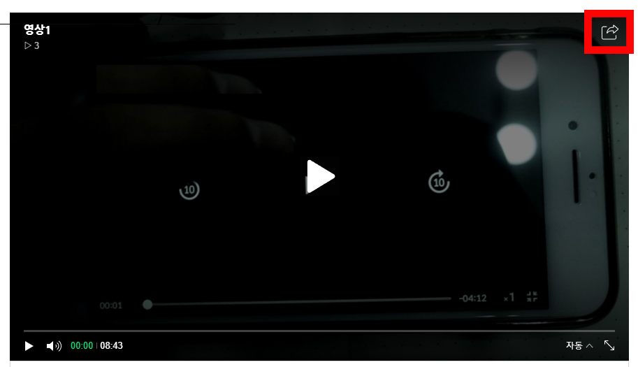 1. 빨간색 상자 처럼 생긴 모양의 영상 속 공유 버튼 찾아서 누르세요!