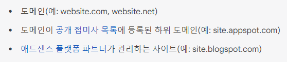 2-2 애드센스에 추가할 수 있는 사이트 형식 : 다음 형식의 사이트만 애드센스에 ‘사이트’로 추가